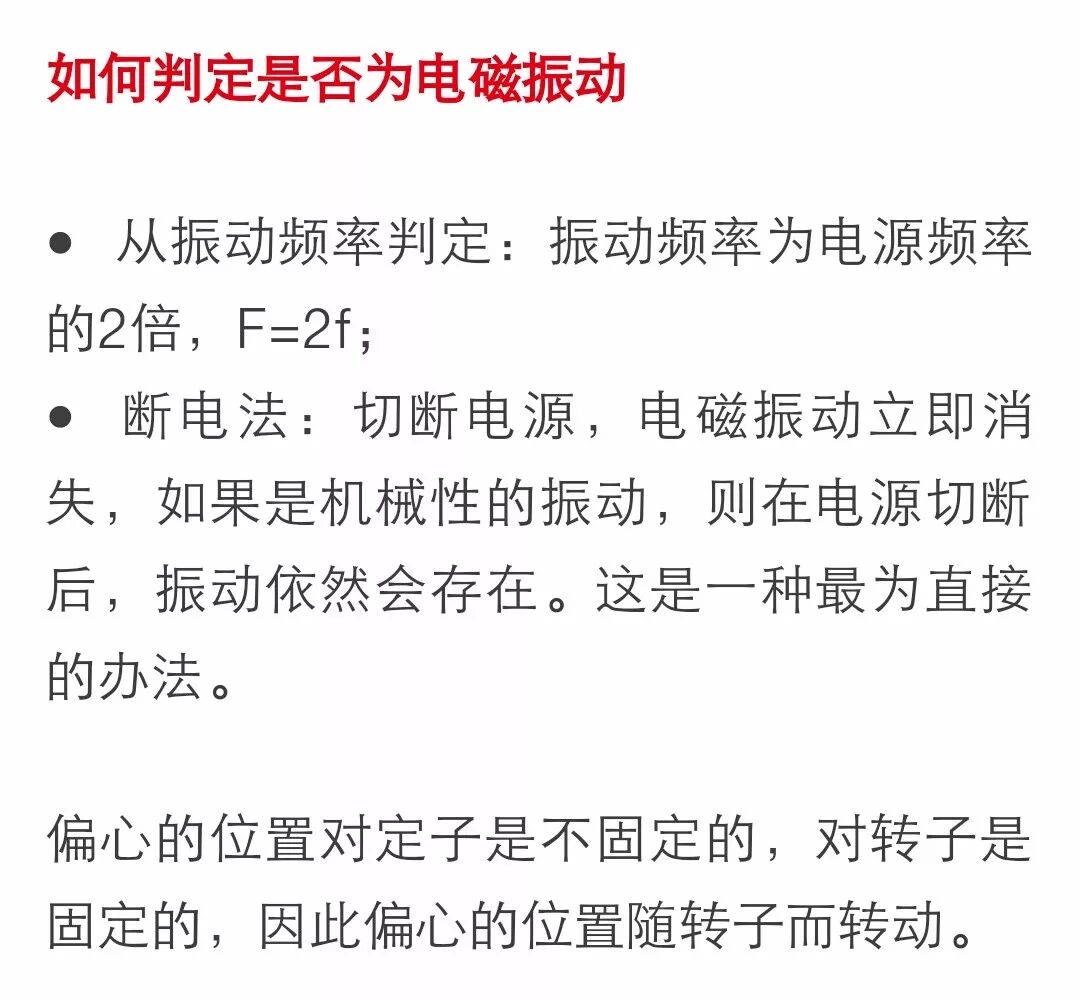 机械偏振力大小与传动系统偏心质量成正比,电机制造环节和与配套设备的连接均会不可避免地产生各种形式的偏心,只要偏心质量不超过设计预期,振动就不会超差或超过客户的认可水平。