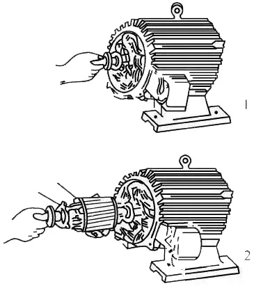 1、小型电机的转子可用手直接从定子内取出,如图1-2所示。但应注意不能擦伤铁芯及绕组。