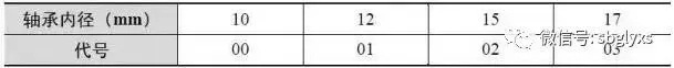 表1.1 10~20mm的轴承内径代号
