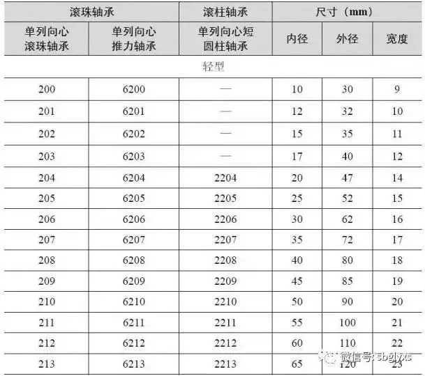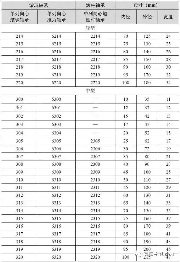 常用的滚动轴承规格列于表1.2