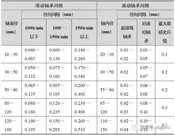 表1.3 电机轴承较大磨损允许值