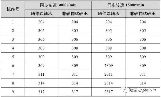 表1.5 J2、JO2系列异步电动机滚动轴承型号