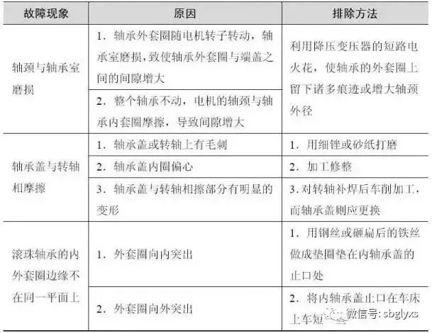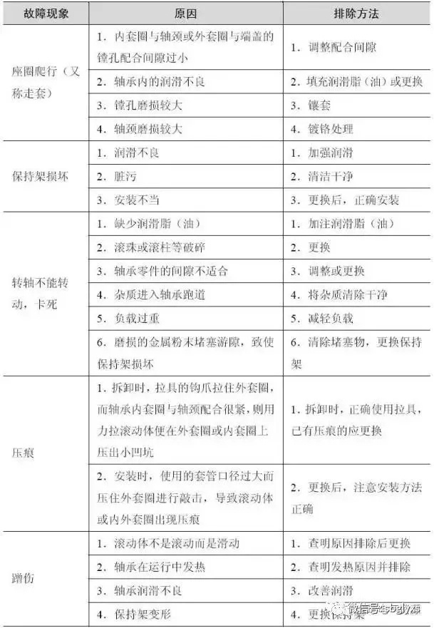 滚动轴承常见故障现象、原因及排除方法列于表1.6