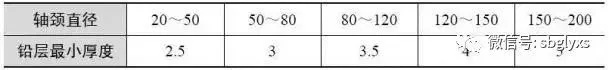 表1.7 轴承铅层的较小厚度与轴颈直径的关系(mm)