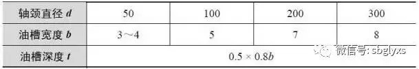 表1.8 油槽尺寸与轴颈直径的关系(mm)