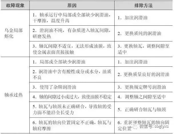 滑动轴承在运行中的常见故障现象、原因及排除方法列于表1.9。