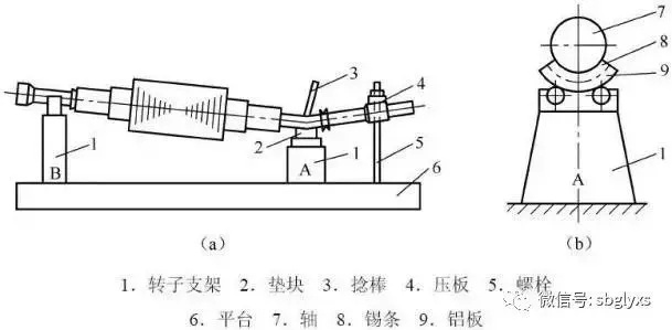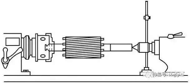 除上述矫直方法,尚可用电焊在弯曲处表面均匀地堆焊一层,之后置于车床上以转子外径为准找出中心,车成所需尺寸并用千分尺检查。