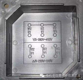 从电机接线盒里可以看出:三个进线接线端子U1、V1、W1的另一端U2、V2、W2如用同一铁片短接,那就是星形(Y)接法,三个进线接线端子U1和W2短接、V1和U2短接、W1和V2短接、那就是三角形接法(接线盒里三根平形铁条),星接时线电压等于相电压的1.732倍,相电流等于线电流,角接时相电压等于线电压,线电流等于相电流的1.732倍。
