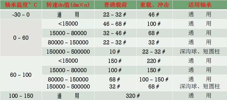 润滑油的选用表: