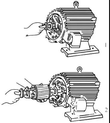 1、小型电机的转子可用手直接从定子内取出,如图1-2所示。但应注意不能擦伤铁芯及绕组。