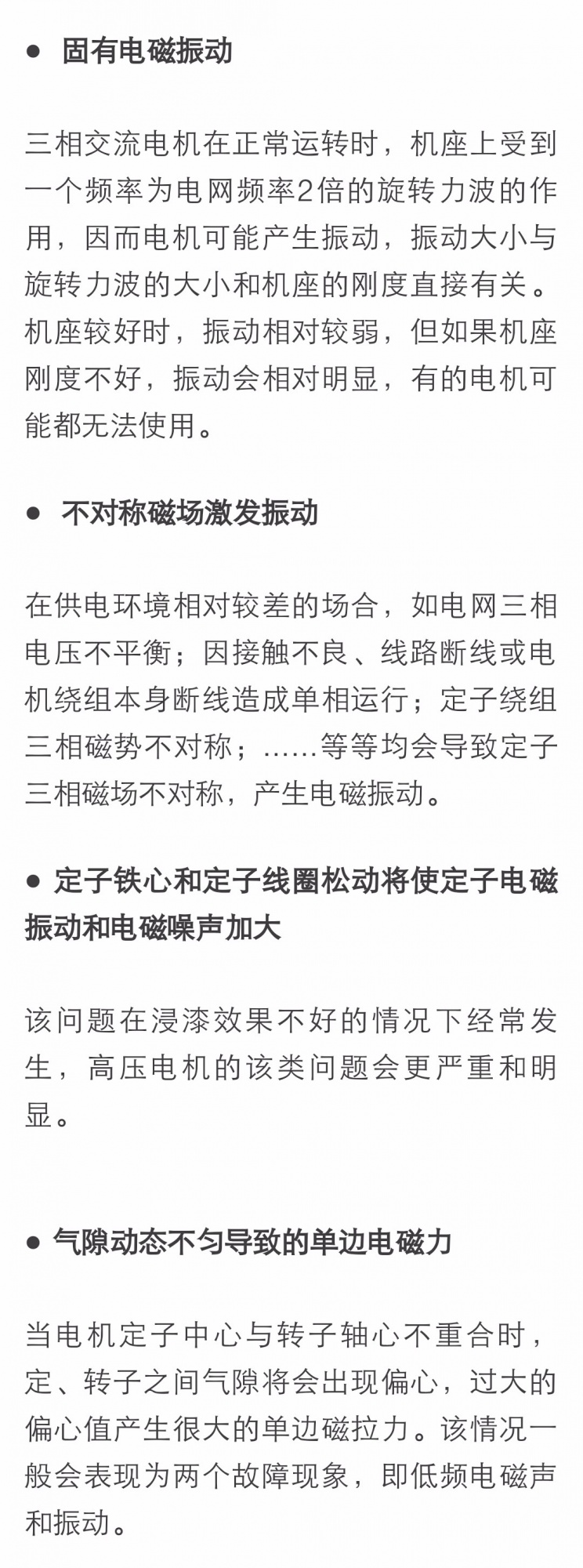 电磁激振力比较复杂,槽配合、磁路过于饱和、壳体刚度等设计缺陷,制造环节机加工精度和整机装配误差引起的定转子偏心,均可能产生激发振动的电磁力。今天Ms.参一一解析、归纳,与大伙一起交流、分享。