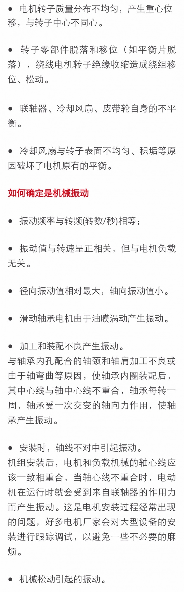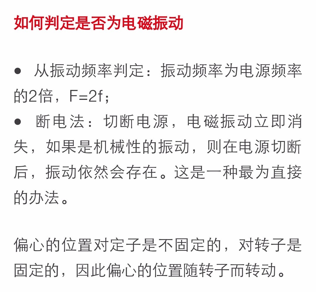 机械偏振力大小与传动系统偏心质量成正比,电机制造环节和与配套设备的连接均会不可避免地产生各种形式的偏心,只要偏心质量不超过设计预期,振动就不会超差或超过客户的认可水平。